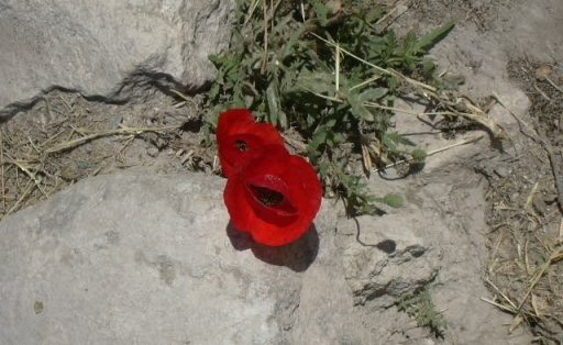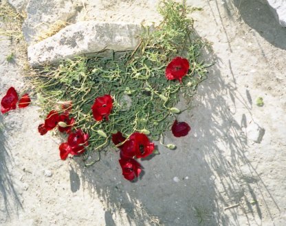 遺跡の次に印象的だったのが、血のように真っ赤な、この芥子の花です。 この花の種は、一体いつからここにこうして存在していて、どんな歴史を見つめてきたのかしら‥‥。 こんなところにも。 | |||