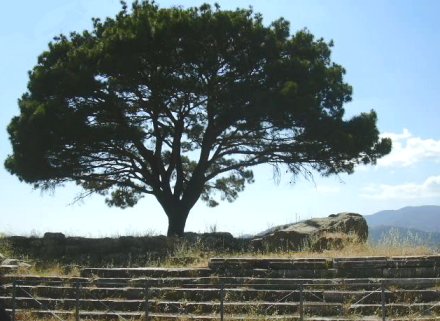 | 上市からベルガマのダムを見下ろす。 当時は上市にも貯水池があり、水道も整備されていたそうです。 ![]() ![]() | ![]() | ←↓ゼウスの祭壇跡付近で。 街を見下ろし一本立ちする松。 ![]() | |