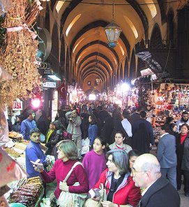おまけ! こちらはエジプシャンバザール(MısırÇarşısl)です。グランドバザールよりも金角湾側、イェ二・ジャミイの向かいにあります。 エジプトからイスタンブールに運ばれたスパイスの市が立ったことに由来するそうですが、 グランドバザールより、やや庶民的で、生活用品などもあるそうです。 yuniyuni、実はこっちにも、かなり行ってみたかった! 写真提供は、さやさんです。 | ||