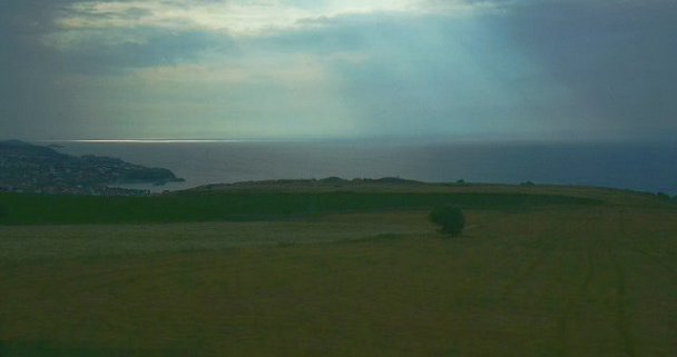 チャナッカレへ向かうバスの中から‥‥。 草原には、所々羊や牛の群れが見えます。車に混じってトラクターの姿も。農家の家々には、鶏や犬が放し飼いされていたり‥‥。 | ||