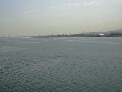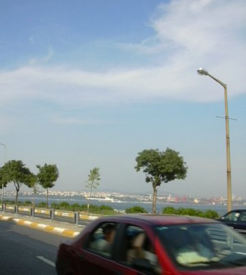 | 写真は旅仲間のUchidaさん。到着日に撮影。 遠くに望むのはイスタンブール新市街。 ![]() | ブルサの街を離れ、再びイスタンブールへ。 この日も、波は穏やか。 ![]() | イスタンブールを去る日、見上げた空。![]() |