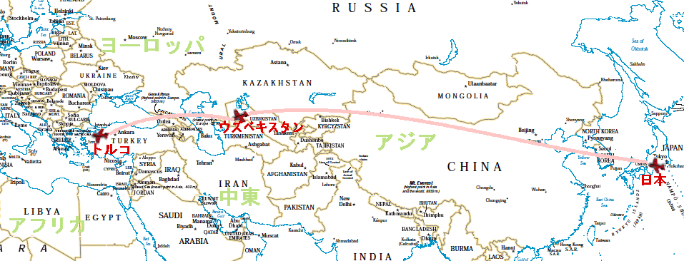 ∴地図(トルコへの空路)